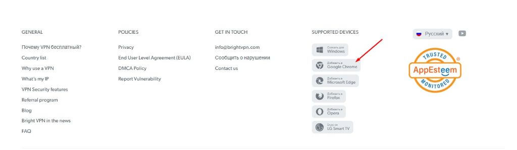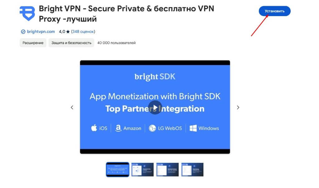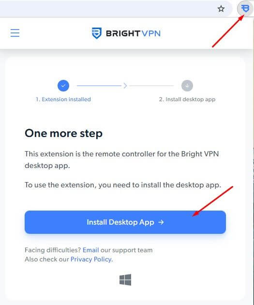 Для работы расширения потребуется установленная десктоп-версия Bright VPN, поэтому после запуска расширения нажмите на эту кнопку.