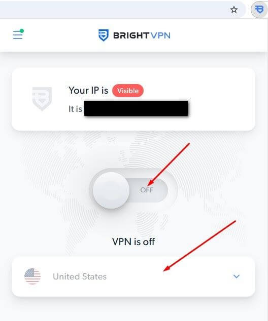 После установки десктоп-версии Bright VPN вы можете запустить расширение, выбрать сервер и включить ВПН.
