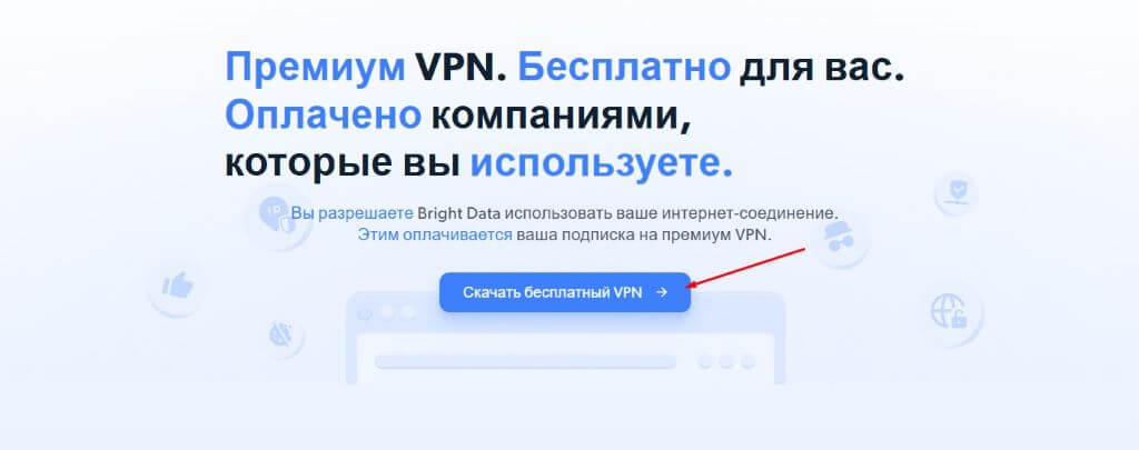 На главной странице официального сайта нажмите на кнопку «Скачать бесплатный VPN».