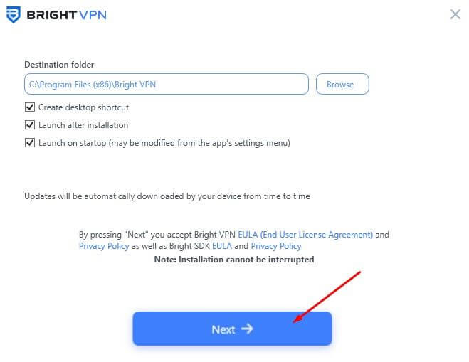 После установки программа запустится автоматически. Вы сможете выбрать предпочитаемый сервер и подключиться к Bright VPN.